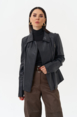 Куртка из натуральной кожи - изящная и универсальная вещь в гардеробе. Выполнена в черном цвете, что делает ее практичной. Модель приталенная, что делает ее более женственной. Застегивается на молнию. Воротник можно поднять и закрепить на ремешки. По бокам есть карманы на молнии. Куртка стилизована накладными вставкамина рукавах и плечах.